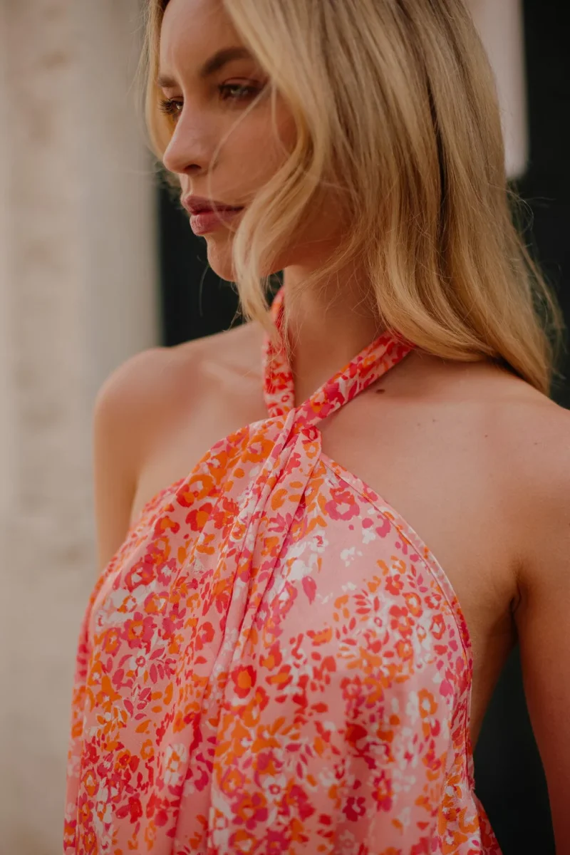 Éblouissez avec la Robe Résilience, une pièce courte et fluide au charme irrésistible. Son imprimé fleuri dans les tonalités d’orange et de rose apporte une touche de fraîcheur et de gaieté. Dotée d’une encolure américaine à nouer dans le cou et d’un dos nu séduisant, cette robe en tissu satiné offre une allure élégante et raffinée. Parfaite pour les journées ensoleillées ou les soirées estivales, la Robe Résilience incarne la beauté et la force féminine.