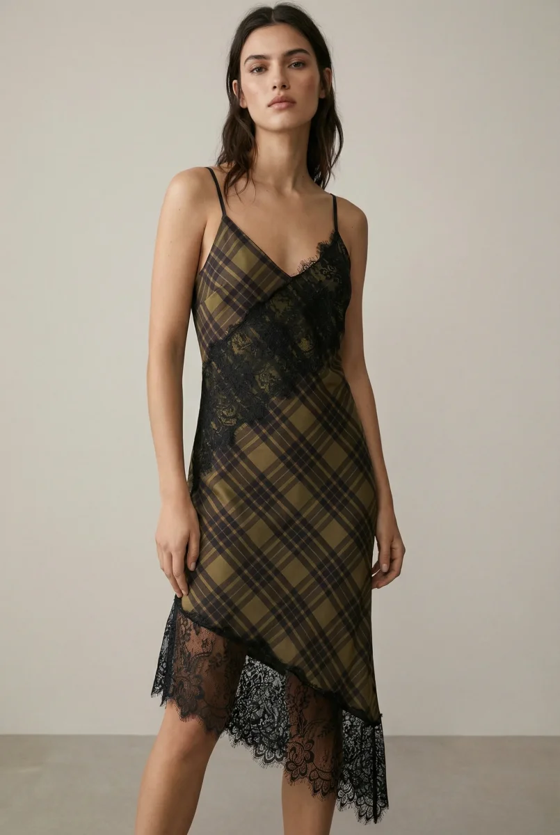 Le satin doux apporte une sensation agréable au porter, tandis que le décolleté en V souligne le buste avec équilibre. Les bretelles fines réglables permettent un ajustement personnalisé, assurant maintien et liberté de mouvement. Un détail de dentelle délicate vient enrichir le design sans surcharger la silhouette.