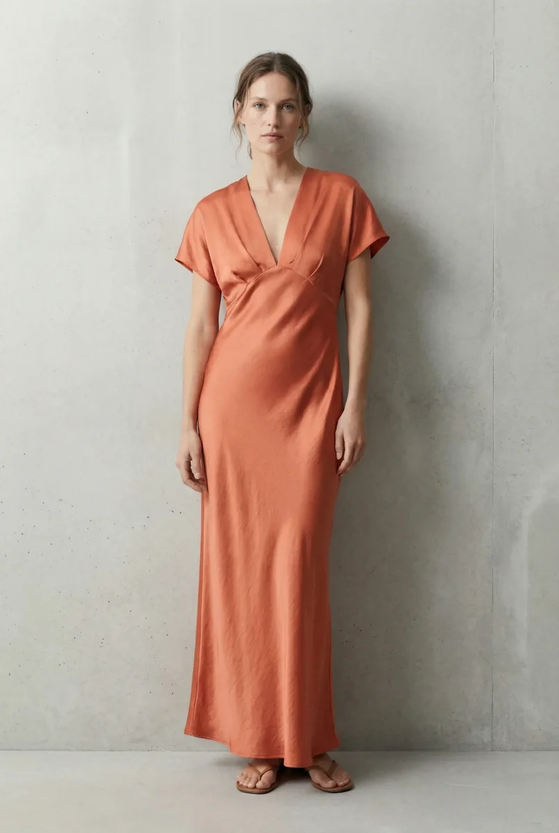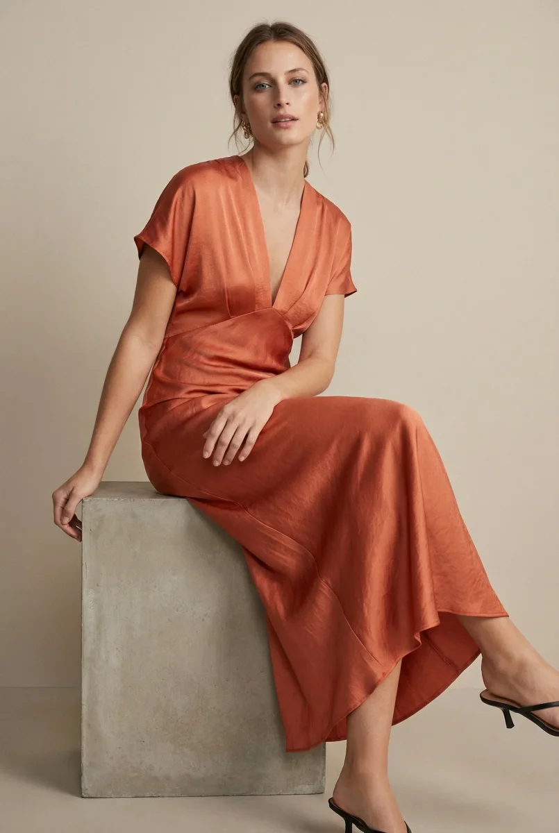 Robe satin orange – l’élégance au quotidien