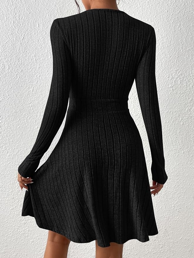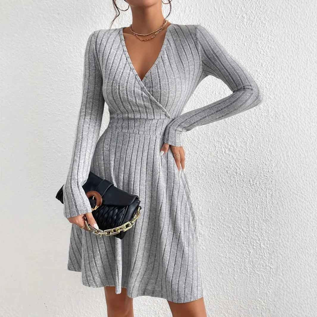 Découvrez la Robe Victoire™, la pièce maîtresse qui allie confort hivernal et sensualité. Confectionnée dans une maille côtelée (ribbed knit) épaisse et luxueuse, elle vous enveloppe de chaleur. Son design portefeuille (cache-cœur) et son col V plongeant créent un décolleté captivant, idéal pour les soirées et dîners où vous voulez briller.