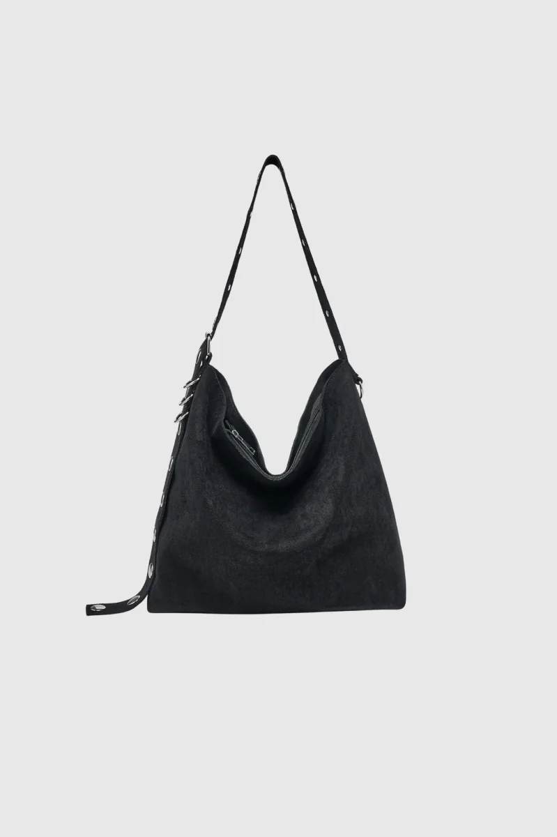 • Avec un total look noir pour mettre en valeur la texture simili cuir