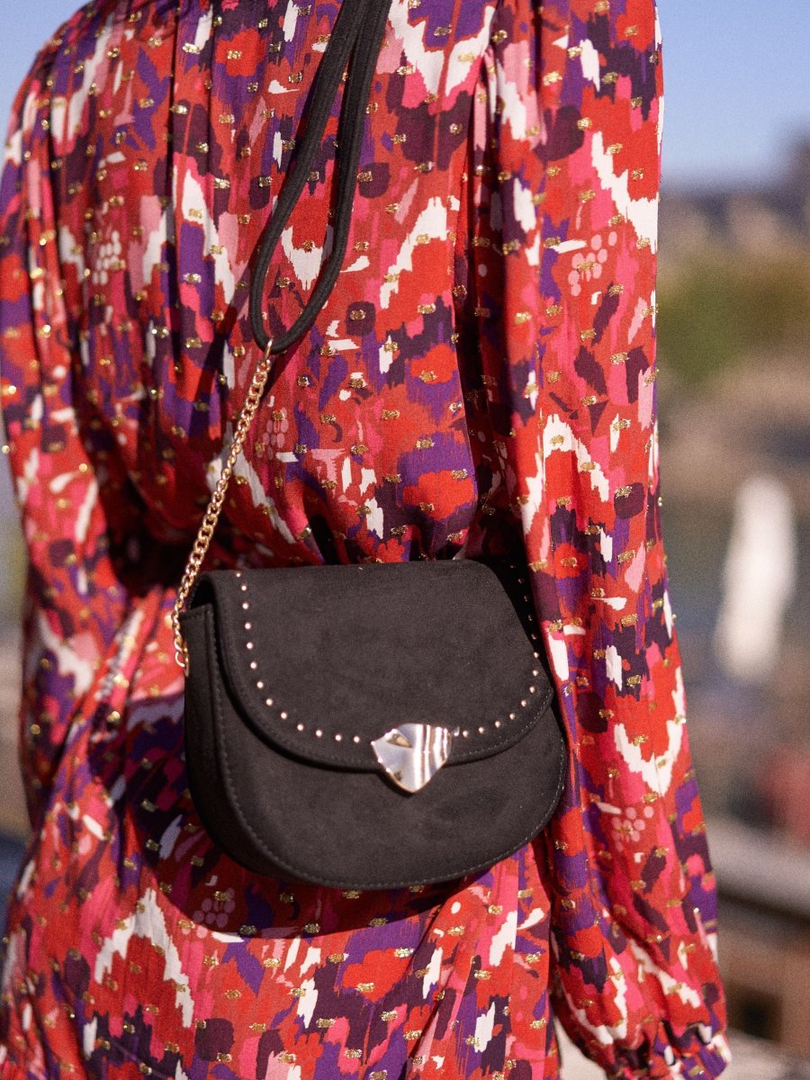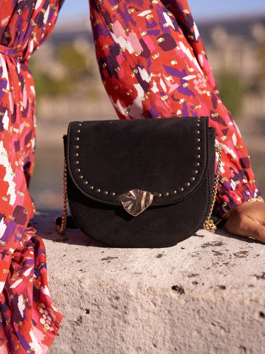 Zoya est un sac noir effet daim très tendance. Ses lanières et ses détails dorés ajoutent glamour et style à ce sac qui deviendra bientôt votre meilleur allié.