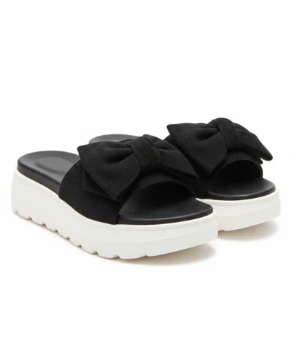 Sandales Claquettes à Plateforme avec Nœud Papillon et Semelle Crantée Épaisse