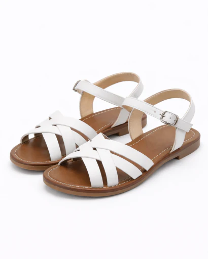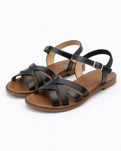 Ces sandales plates pour femme se distinguent par leurs brides croisées élégantes qui enveloppent délicatement le pied tout en assurant une tenue confortable. Leur silhouette minimaliste et estivale en fait un modèle polyvalent, facile à associer avec une tenue décontractée ou plus habillée.
