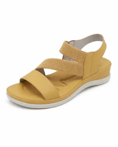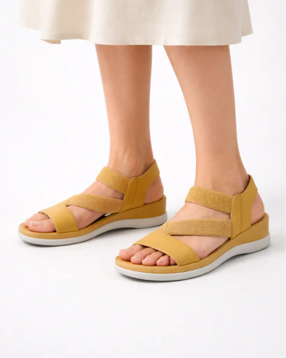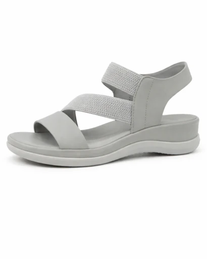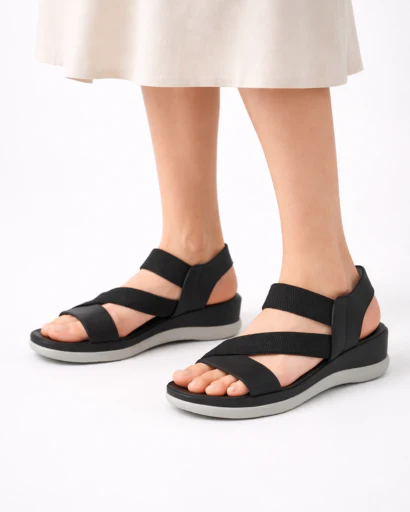 Ces sandales compensées affichent une silhouette moderne et équilibrée grâce à leur semelle épaisse profilée qui structure visuellement la chaussure. Le dessus se compose de brides croisées sur l’avant du pied associées à une bride supérieure texturée qui apporte du relief et une touche contemporaine. La bride arrière maintient le pied tout en soulignant la ligne de la cheville pour une allure soignée. Leur design ouvert met en valeur le pied et s’intègre facilement à une tenue estivale, qu’elle soit décontractée ou plus élégante. Ce modèle se distingue par son esthétique épurée et actuelle, idéale pour compléter une silhouette féminine moderne.