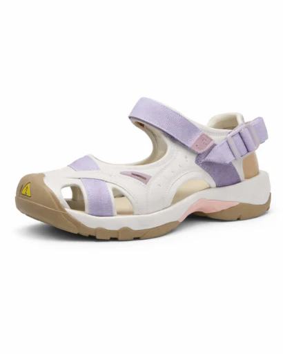 • Design — Brides multiples, empiècements contrastants, bout renforcé, semelle crantée épaisse