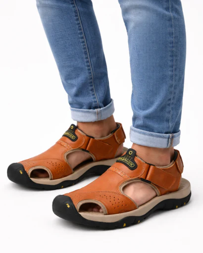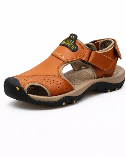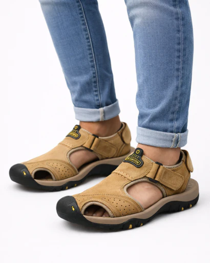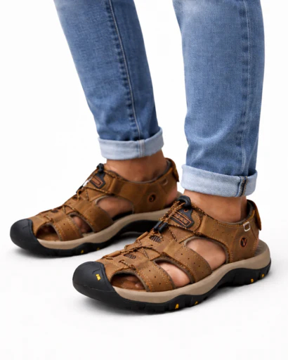 • Design — Brides multiples, empiècements perforés, détails contrastants, semelle crantée épaisse