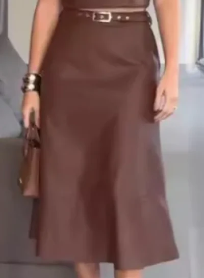 Cet ensemble de deux pièces comprend une jupe midi assortie qui crée une harmonie parfaite, à la fois moderne et élégante.