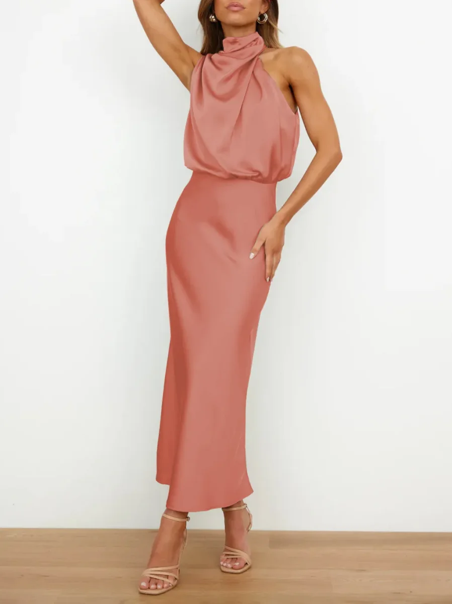 La robe Solara™ combine une coupe fluide sans manches et un design sophistiqué pour un look estival raffiné. Sa simplicité élégante permet de la porter aussi bien en soirée qu’en journée.