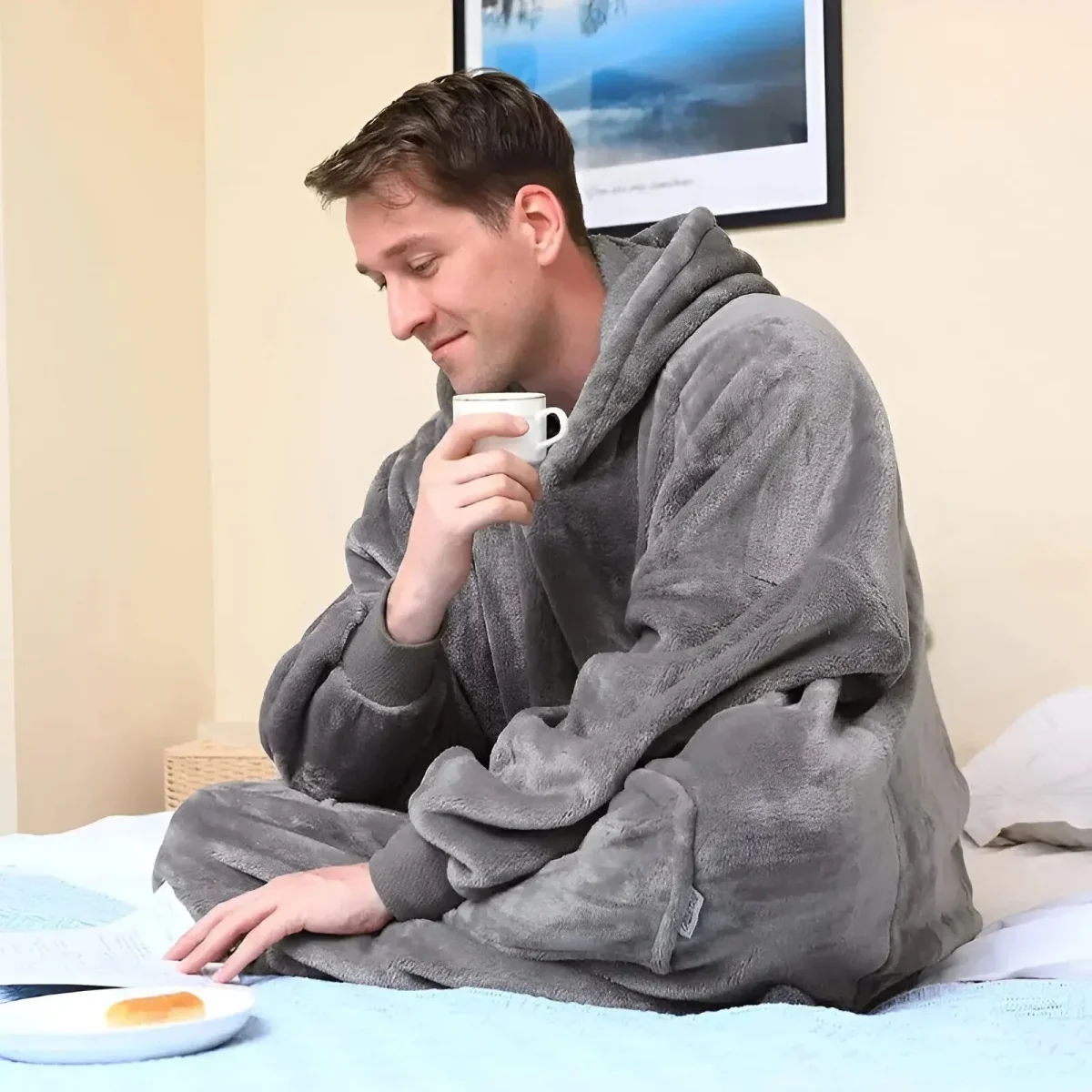 Fabriqué à partir d’un somptueux extérieur en polaire bleu foncé ou bordeaux et d’une doublure en fourrure Sherpa crème douce comme du beurre, c’est l’article indispensable pour vos moments de repos. La coupe généreuse assure une totale liberté de mouvement tout en profitant de la chaleur, idéale pour les longues soirées cinéma ou les week-ends de détente.