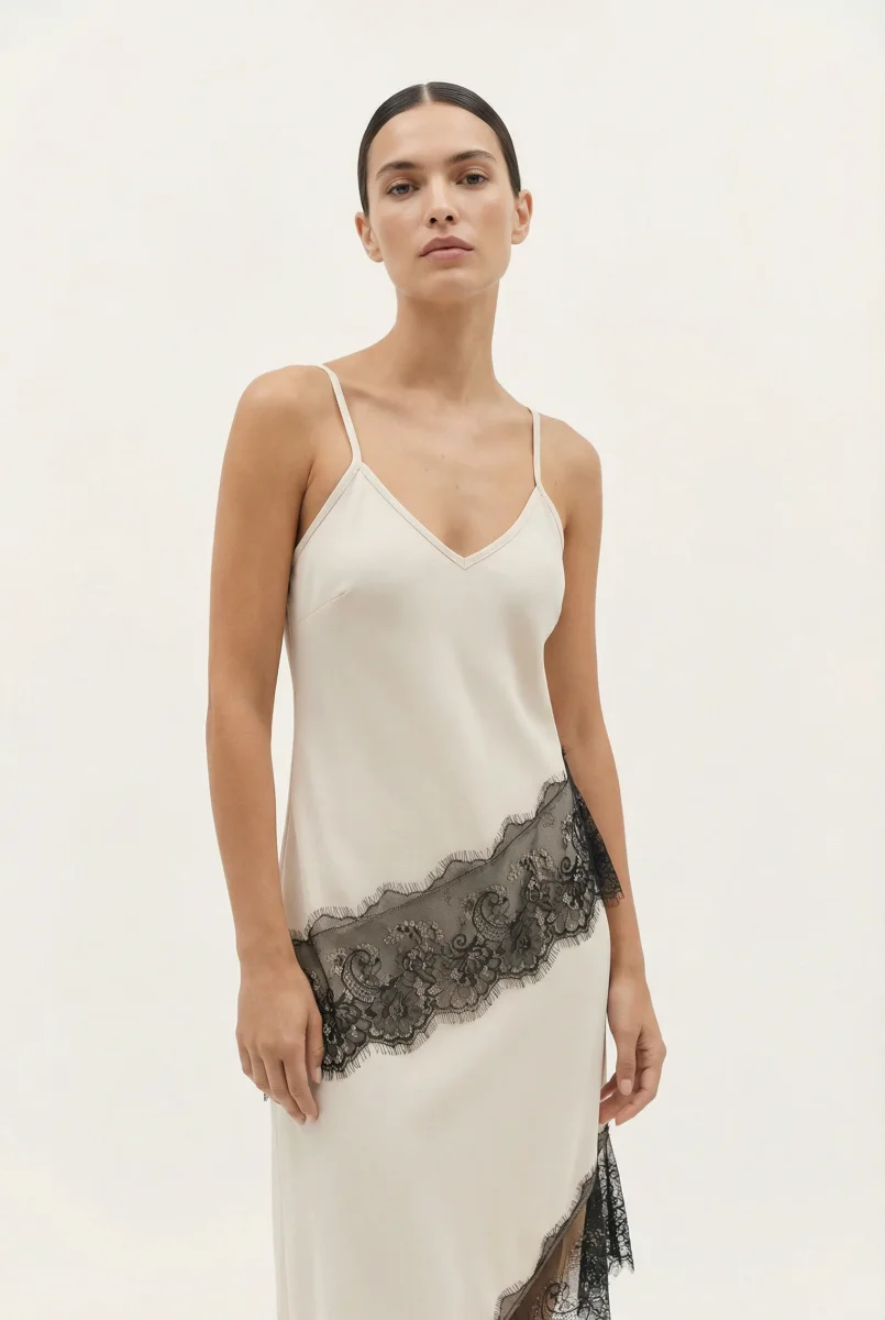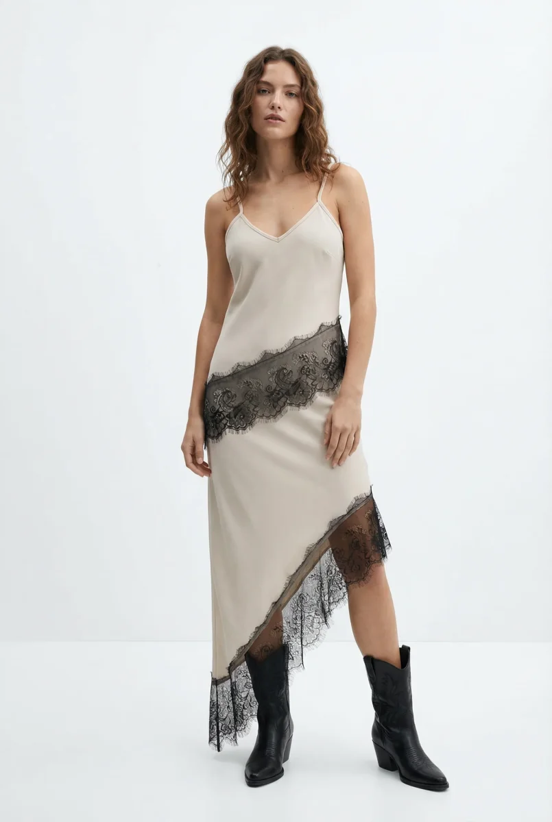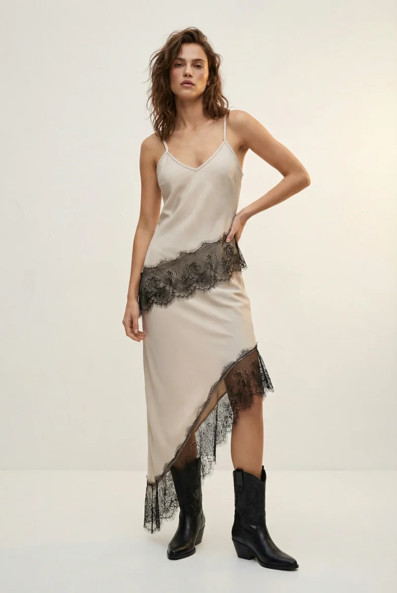 - Dentelle élégante et bas asymétrique pour un style unique.