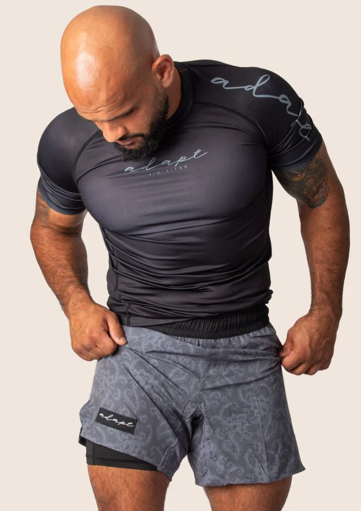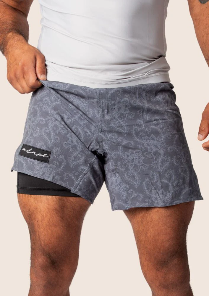 Unisex Dual‑Layer Combination Shorts – Dark Grey Paisley