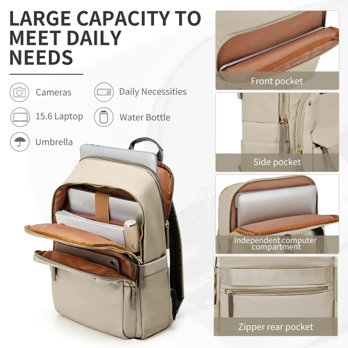 - Stockage organiséle sac à dos est doté de plusieurs poches et compartiments pour garder vos affaires bien rangées.