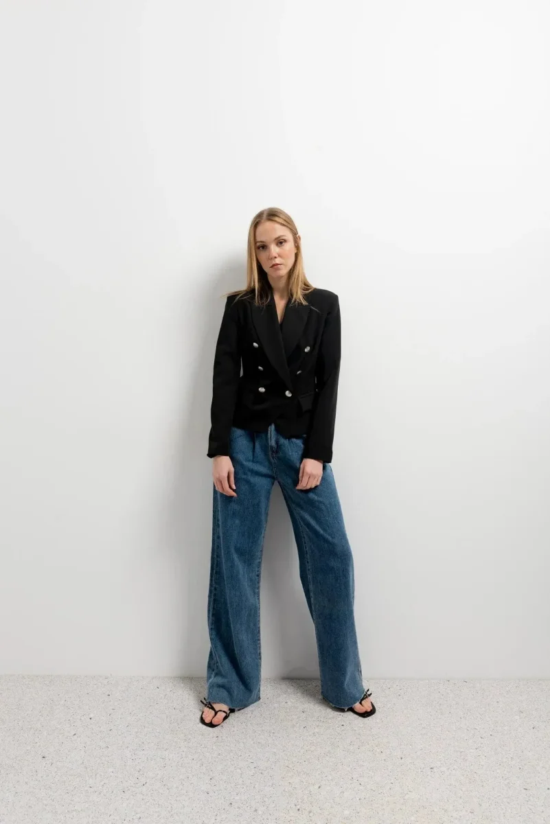 Cette veste blazer noir femme est conçue avec un design à double poitrine qui ajoute une touche de sophistication. Sa coupe ajustée flatte votre silhouette tout en garantissant un confort optimal. Fabriquée avec des matériaux de haute qualité, elle assure une durabilité et un style intemporel. Associée à un pantalon chic pour le bureau ou à un jean décontracté pour le week-end, cette veste combine le meilleur des deux mondes.
