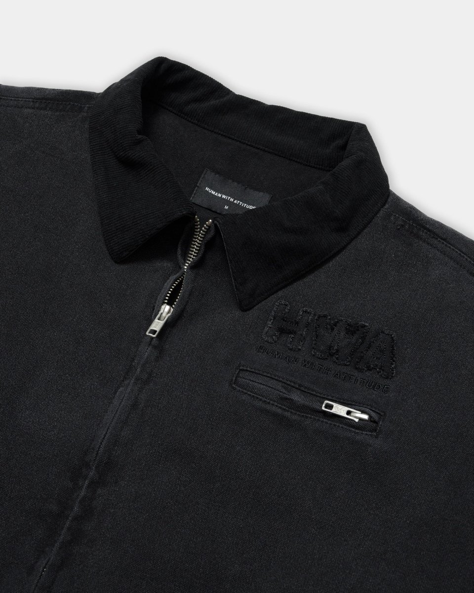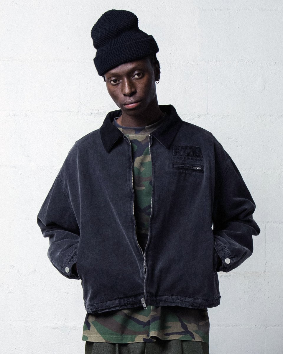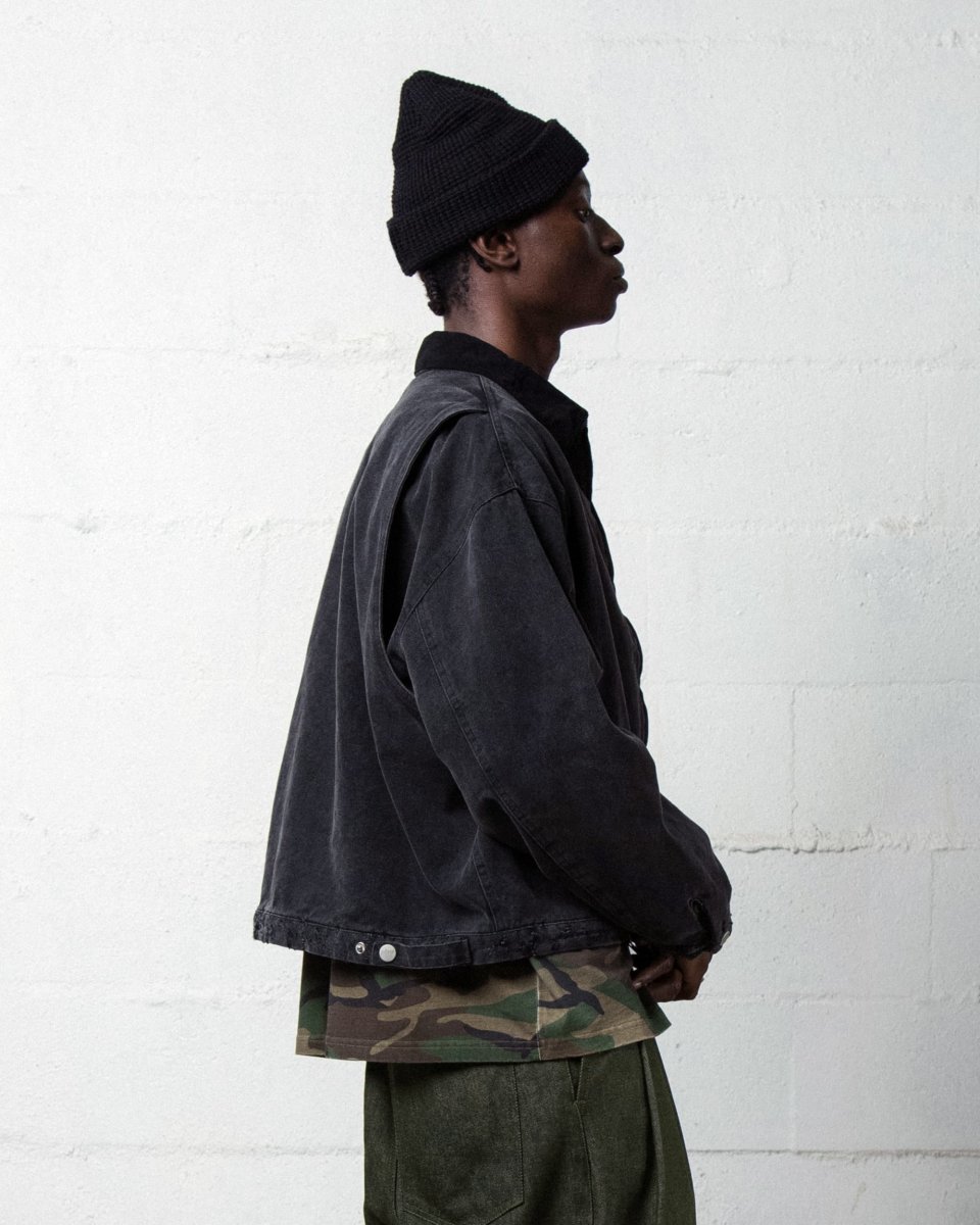 - Veste en canvas « enzyme washed », col en velours côtelé.
