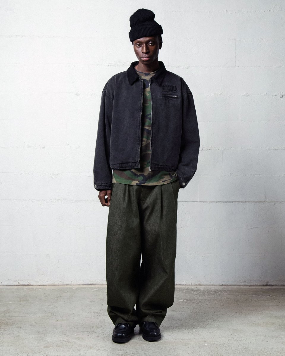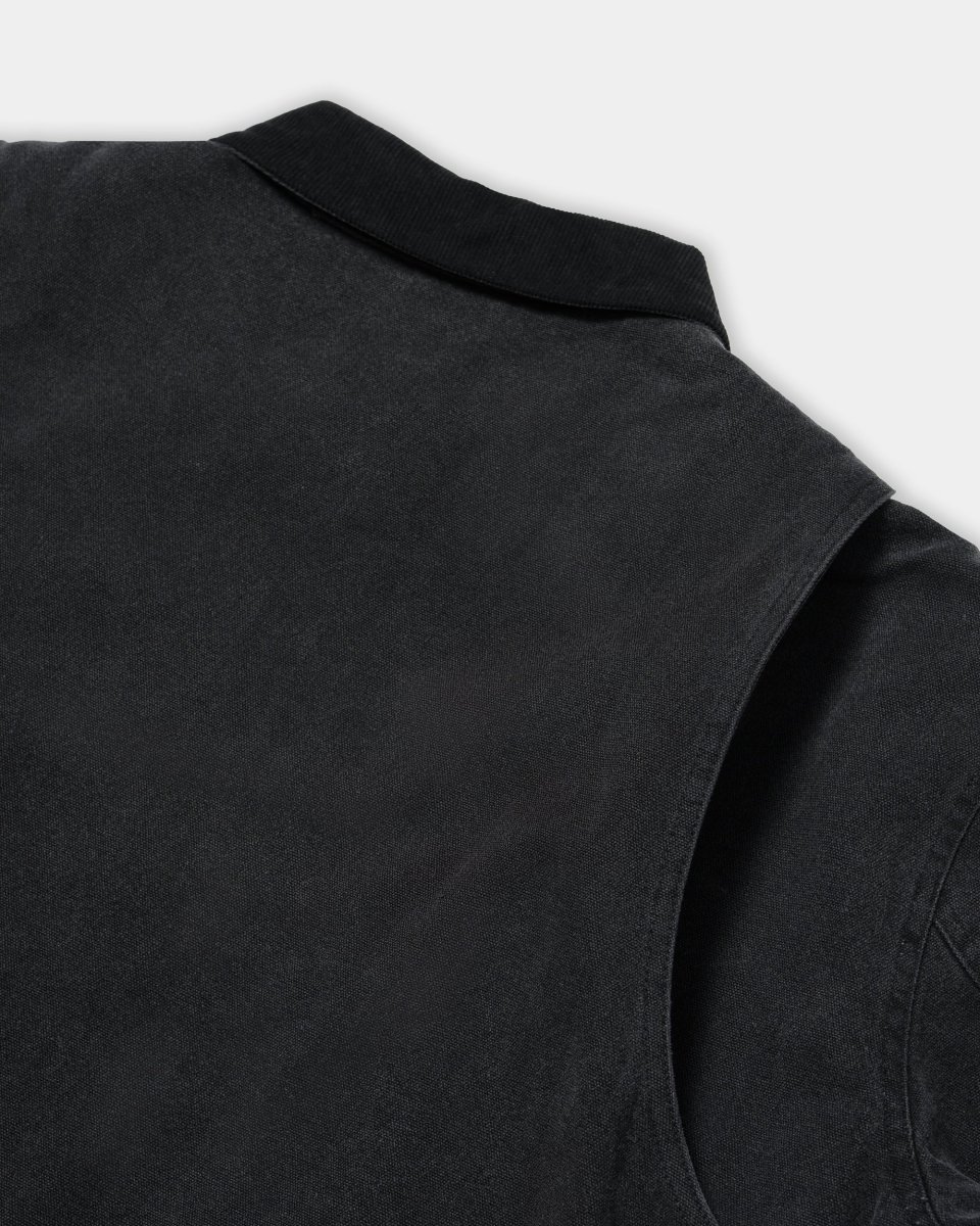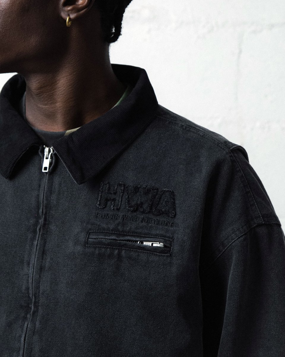 - Veste en canvas « enzyme washed », col en velours côtelé.