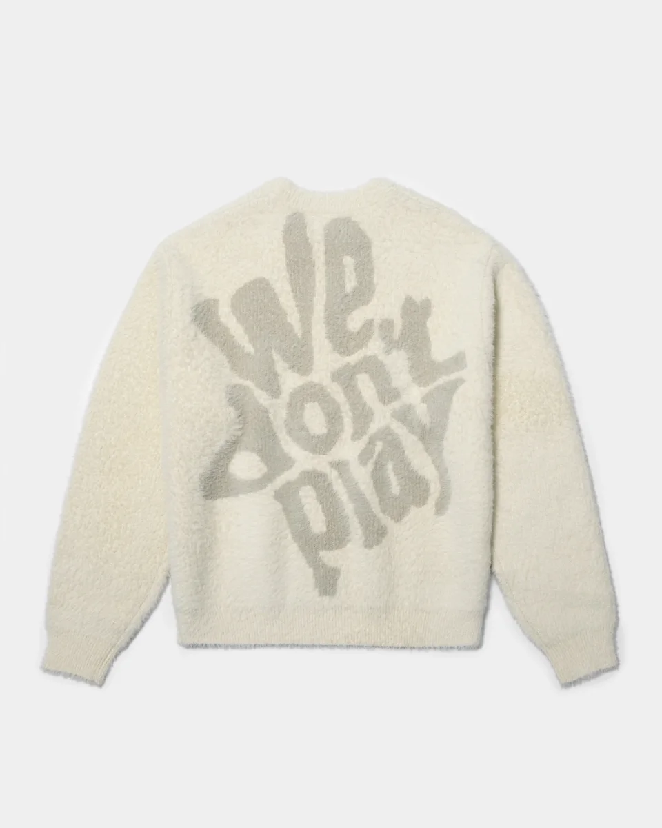 Pull « We don’t play » en matière épaisse et douce « Fuzzy ».